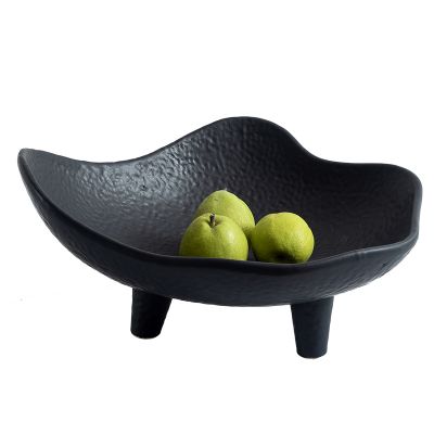 侘寂风三脚异形陶瓷大果盘现代简约家居客厅家用创意水果盘装饰品