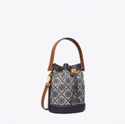 TORY BURCH 汤丽柏琦 T MONOGRAM 迷你老花斜挎水桶包 80534