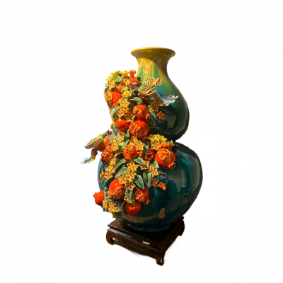 首页 / 家居摆件 / 陶瓷葫芦石榴花瓶手工品喜庆风水植物摆件客厅品装饰礼品开业送礼
