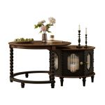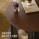法式奶油风实木圆形岩板餐桌椅组合家用带转盘饭桌现代简约圆桌