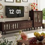 法式奶油风实木圆形岩板餐桌椅组合家用带转盘饭桌现代简约圆桌