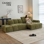 首页 / 轻奢家具 / 卡萨驰电动伸缩沙发客厅法式复古中古星云像素绿色雪尼尔布艺沙发